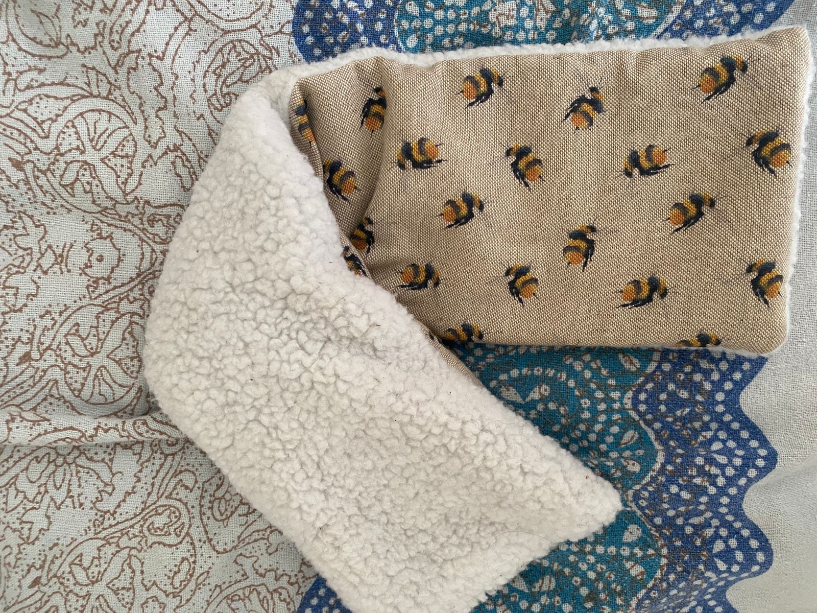 The wheat bag is excellent quality and reasonably priced. I particularly like the fleece backing. Once heated the bag does exactly what I wanted, it’s very soothing when placed on the lower back to ease pain.